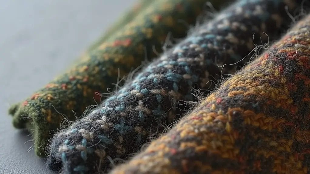 You'll find this textile's unique characteristics stem from its manufacturing process, where multiple colored yarns are woven together to create complex patterns and textures. The wool yarn undergoes a specific spinning technique that creates its signature flecked appearance.