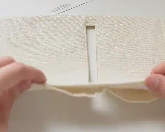 Carefully cut through both fabric layers in the middle of the rectangle along the marked opening. Make small clips into each corner of the opening (without cutting through stitches) to reduce bulk and allow neat turning.