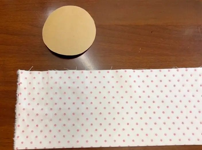 - To create fabric flower ornaments, start with a piece of fabric measuring 30x50cm and a circular template with an 8cm diameter.