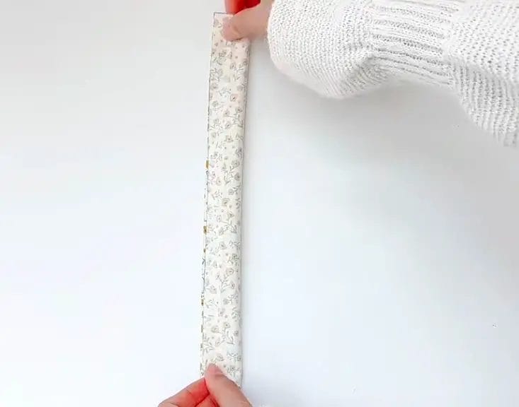 Take one piece of the 27x6cm fabric and fold it in half lengthwise, so the right sides are together. This will create a long strip.