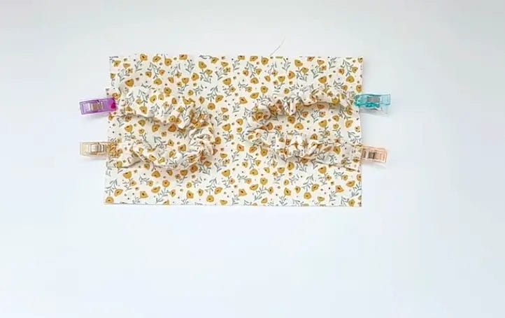 Clip both ends of the elastic band to the unsewn ends of the fabric to keep them secure.