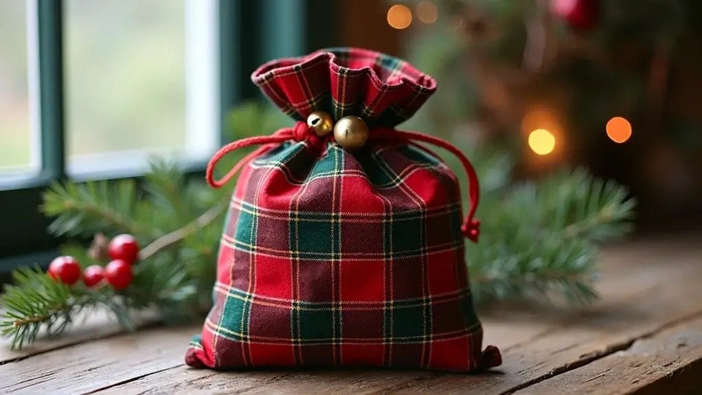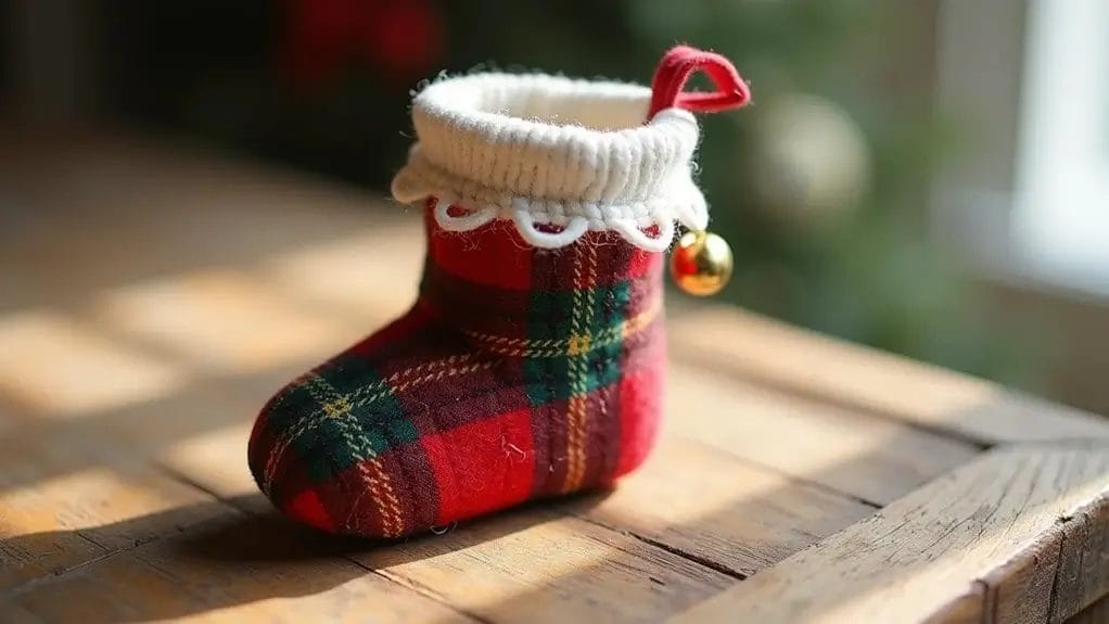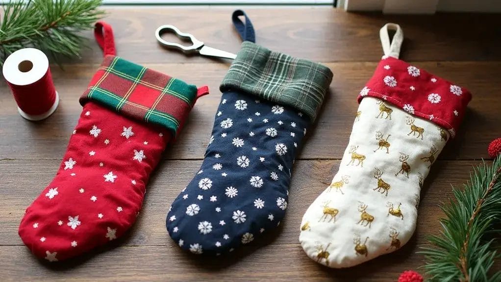 Mini stockings bring adorable charm to your holiday decorating while using minimal fabric and time. You'll need just a small piece of Christmas fabric, some felt for the cuff, and basic sewing supplies to create these handmade treasures.