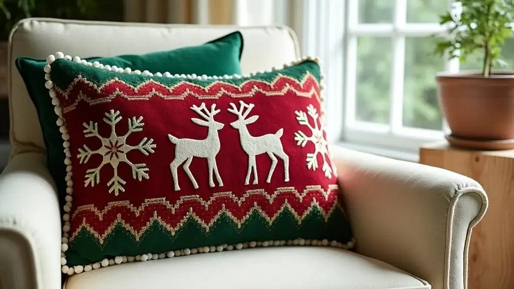 - Craft decorative throw pillows with Christmas-themed fabrics and optional metallic embellishments for seasonal home décor.