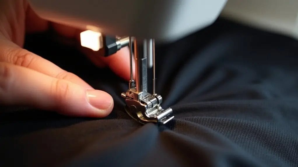 - Use a twin needle to create parallel stitching lines that mimic professional coverstitch machines - this technique allows the hem to stretch without breaking.
