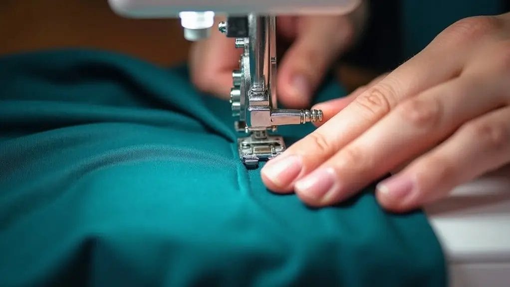 With proper tools and techniques, you'll achieve professional results when sewing ponte knit fabric. Remember to maintain correct needle size, stitch selection, and tension settings throughout your project. Pre-washing, pattern alignment, and careful handling prevent distortion and guarantee quality construction. When issues arise, adjust your machine settings and verify you're using appropriate stabilizers. Master these fundamentals, and you'll confidently create garments that showcase ponte knit's versatile properties. It's easy to love sewing with ponte, as its forgiving nature and beautiful drape make every project rewarding.