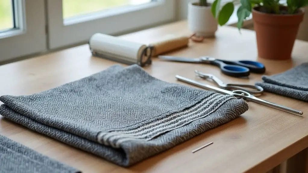 Proper cutting tools make all the difference when working with tweed's dense, textured weave. You'll need specialized equipment to prevent fraying and guarantee clean, precise cuts through this substantial fabric.