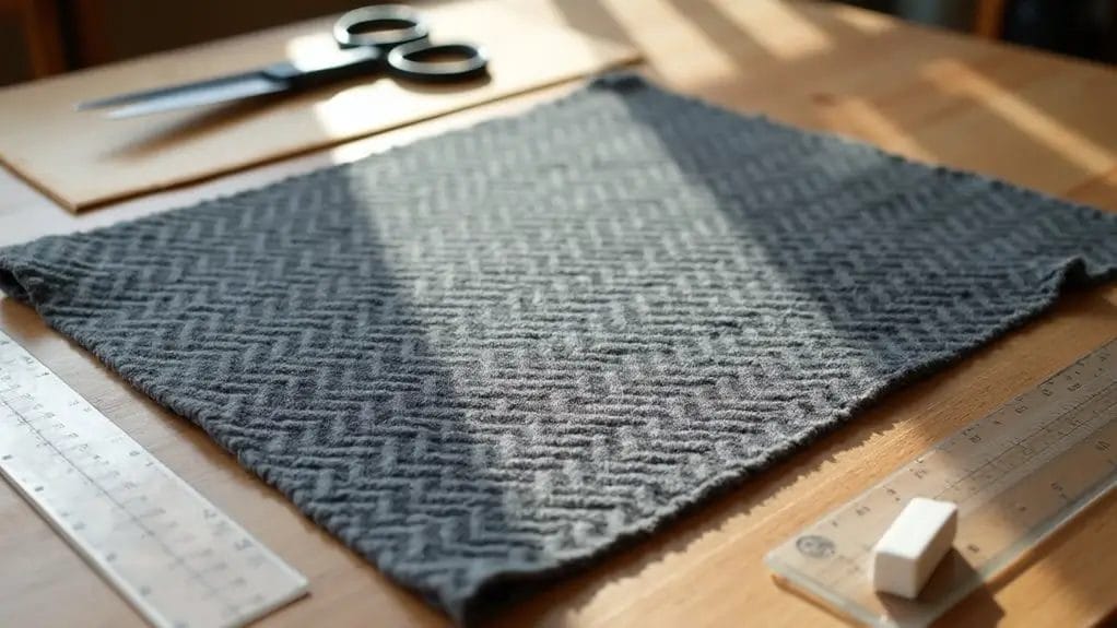 Armed with sharp cutting tools, you'll need to follow specific cutting techniques to master tweed's challenging texture. Always cut in a single layer with the fabric face up, following the weave's direction to prevent distortion.
