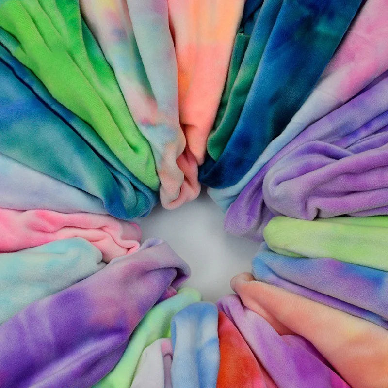Tie Dye Minky Fabric By The Yard | Rainbow Printed Minky Fleece Fabric | DIY Plushies Toys Clothing Material