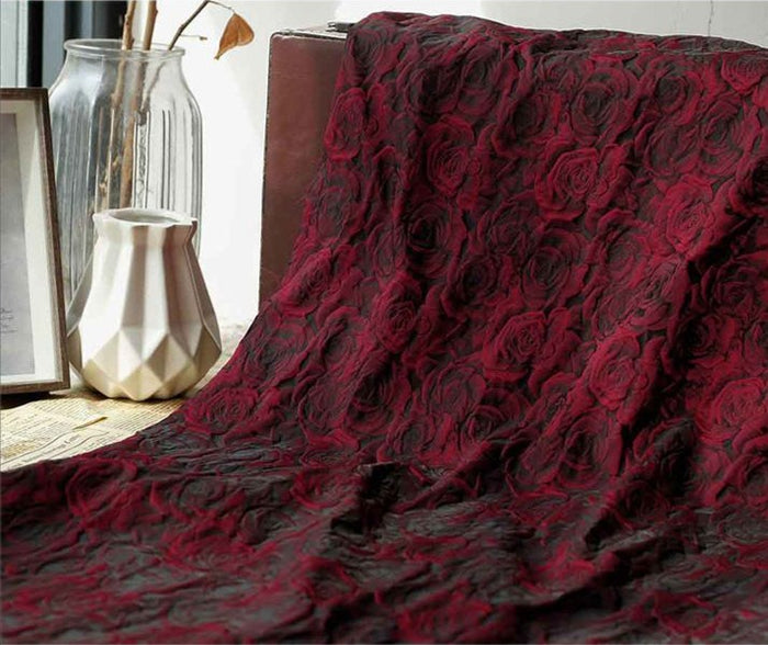 Rose Jacquard Brocade Fabric By the Yard| Red Black Gradient Brocade Fabric