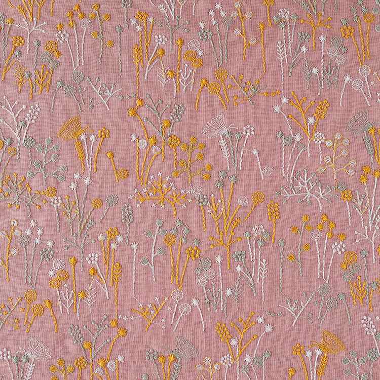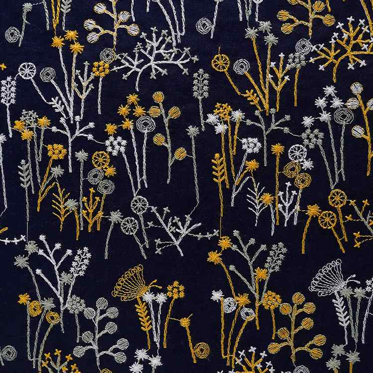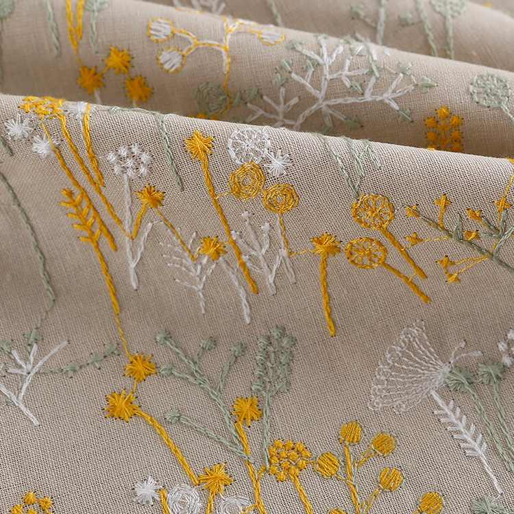 Plant Embroidered Fabric By the Yard -Longan Craft