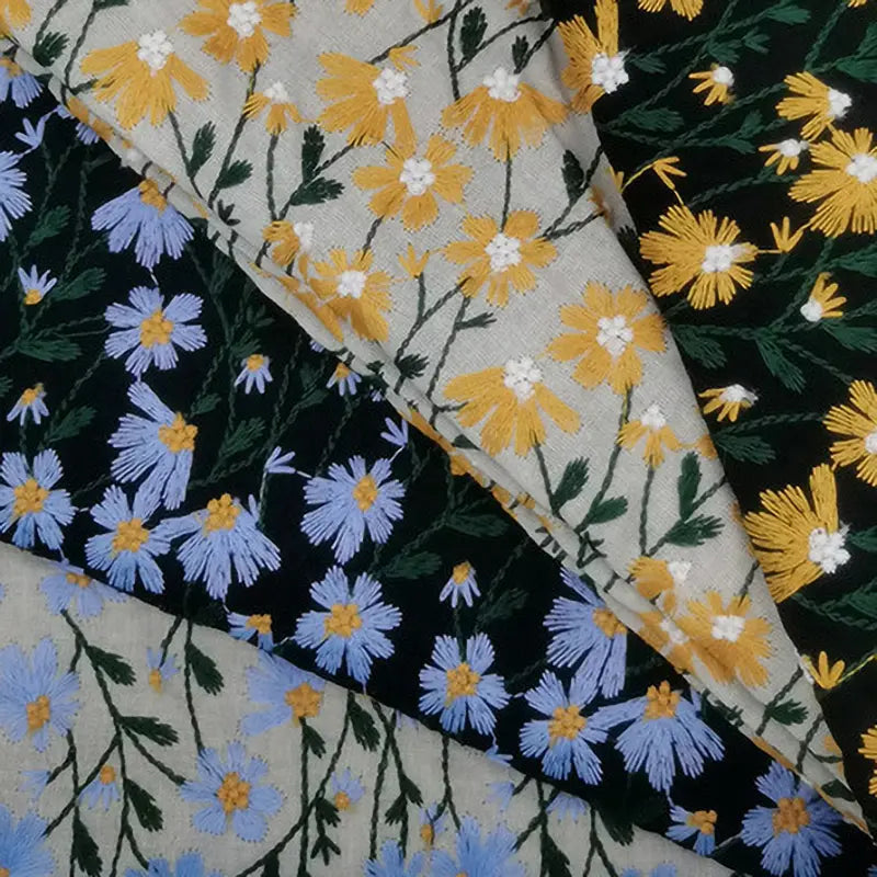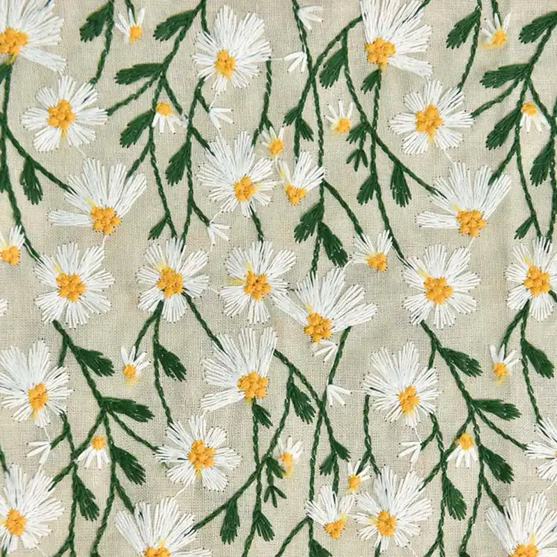 Daisy Ramie Fabric By the Yard|Embroidered Daisy Cotton Ramie Fabric|Soft Dresses Sewing Craft Material| Curtain Upholstery Fabric