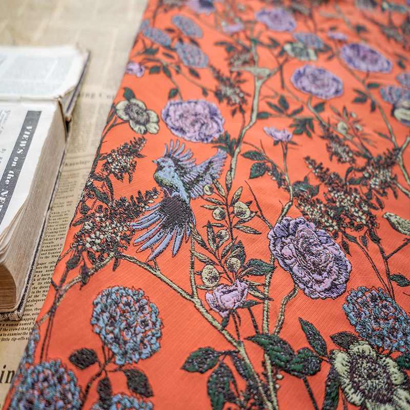 Flower bird brocade fabric evokes a sense of nature's beauty and brings a unique charm to any creative project, making it a cherished choice for those who appreciate the delicate.