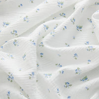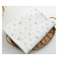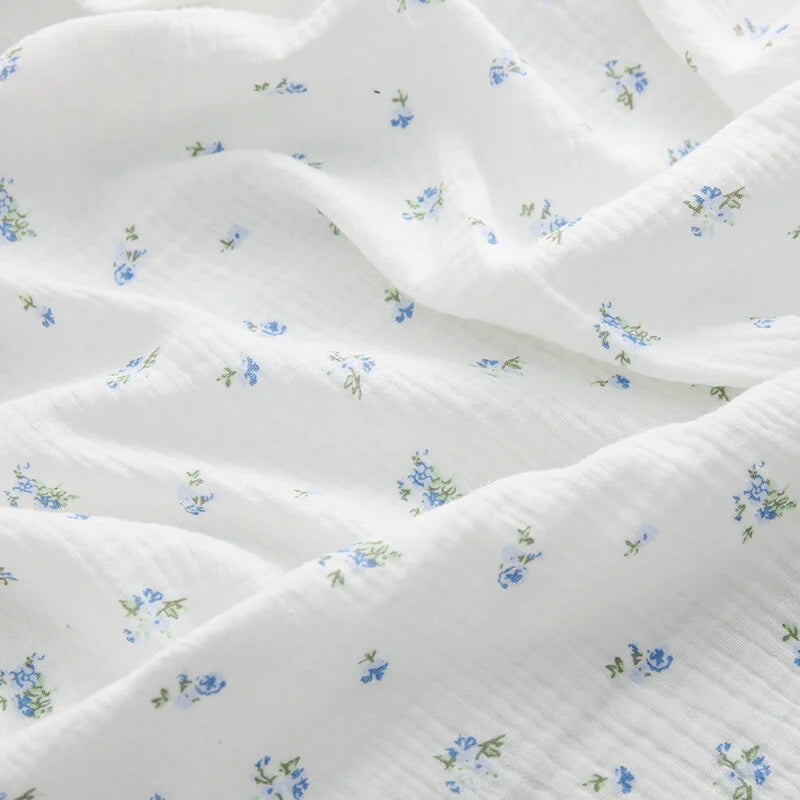 Flower Cotton Double Gauze Fabric By The Yard | Blue Flowers Printed 100%Cotton Crepe Fabric