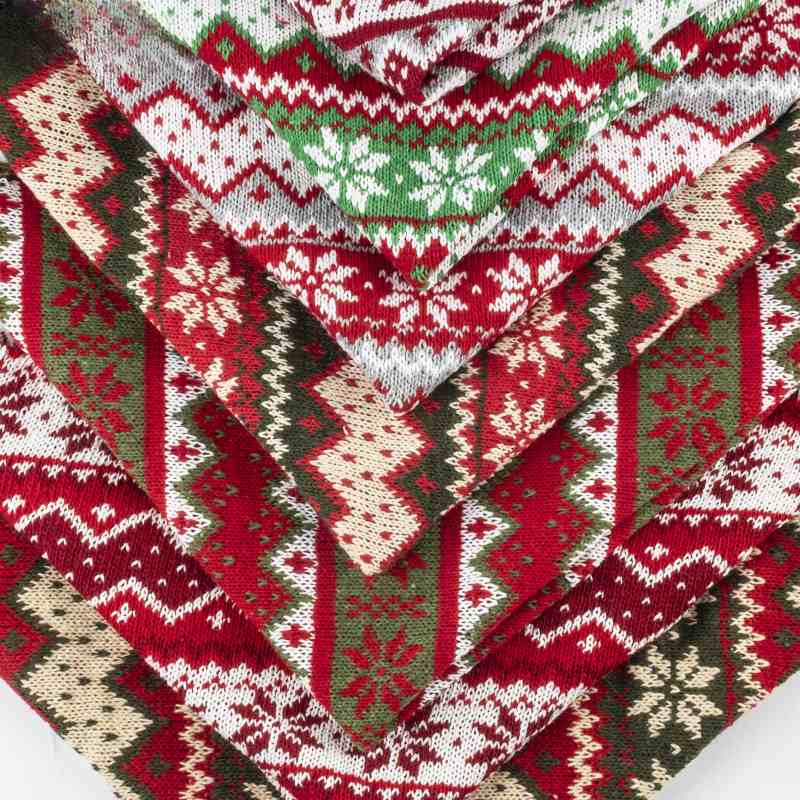 Introducing our exquisite Knitted Polyester Christmas Fabric by the yard, the perfect choice for your festive creations. Featuring a delightful snowflake and stripe pattern in a variety of captivating colors, this fabric brings warmth and holiday cheer to your projects. Crafted from a blend of high-quality polyester and cotton, it ensures durability and comfort. The soft texture and easy-to-work-with material make it ideal for creating stunning Christmas decorations, stockings, and apparel. Elevate your holiday crafts with this versatile fabric, and let your creativity shine. Transform your ideas into reality—order your Knitted Polyester Christmas Fabric today!