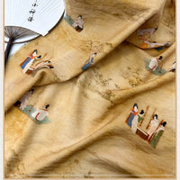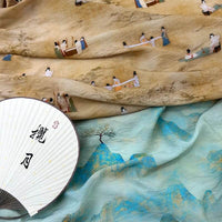 Vintage Print Linen Chinoiserie Fabric By The Yard|Lyocell Linen Fabric By the Yard
