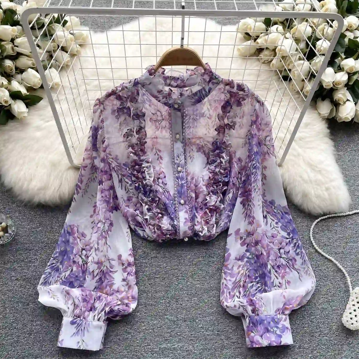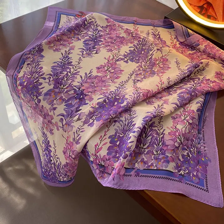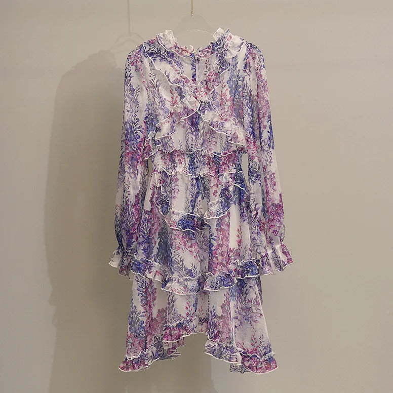 Purple Wisteria Flower Sheer Chiffon Fabric By The Yard | Printed Floral Dresses Fabric | 57Inch Wide Soft Lightweight Sheer Chiffon For Sewing