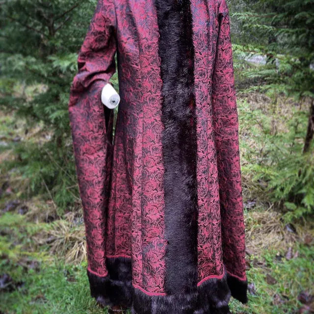 Rose Jacquard Brocade Fabric By the Yard| Red Black Gradient Brocade Fabric