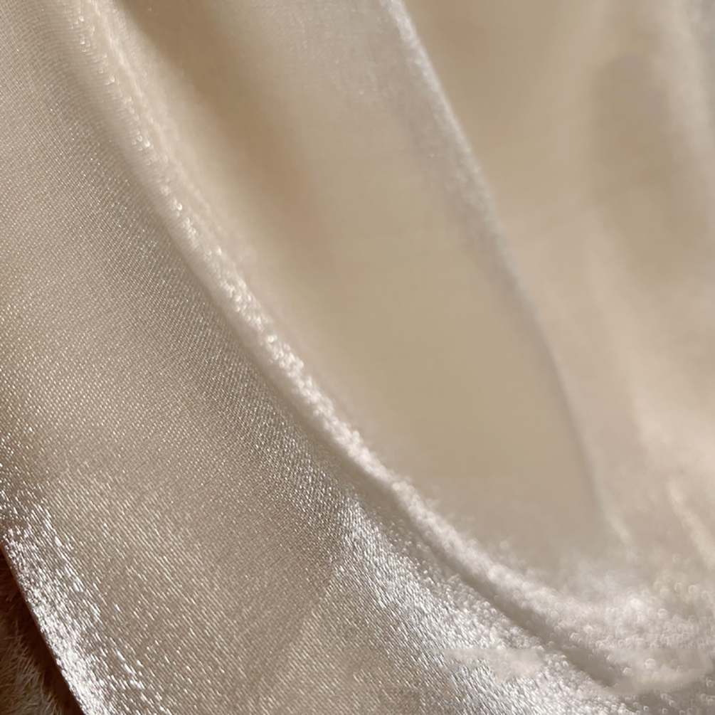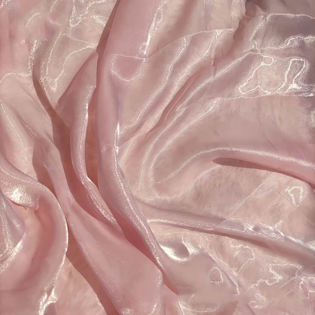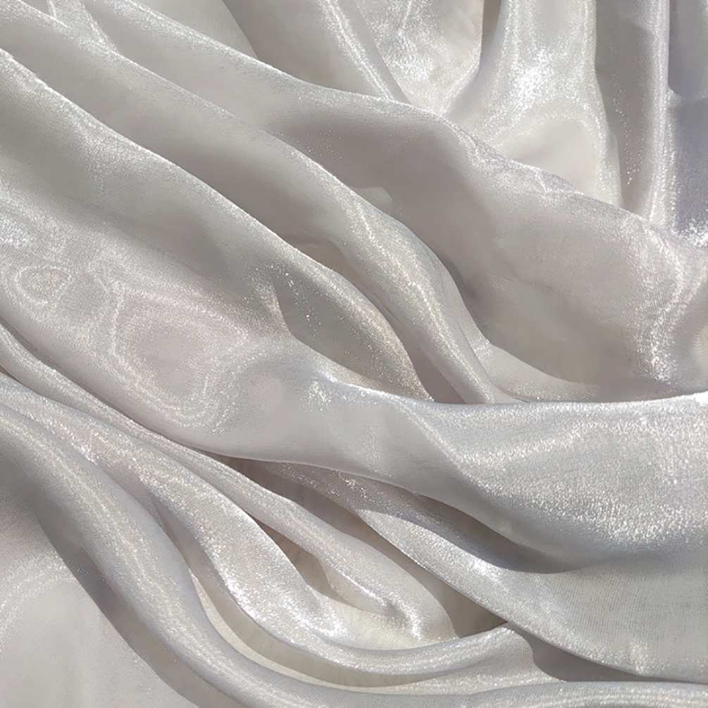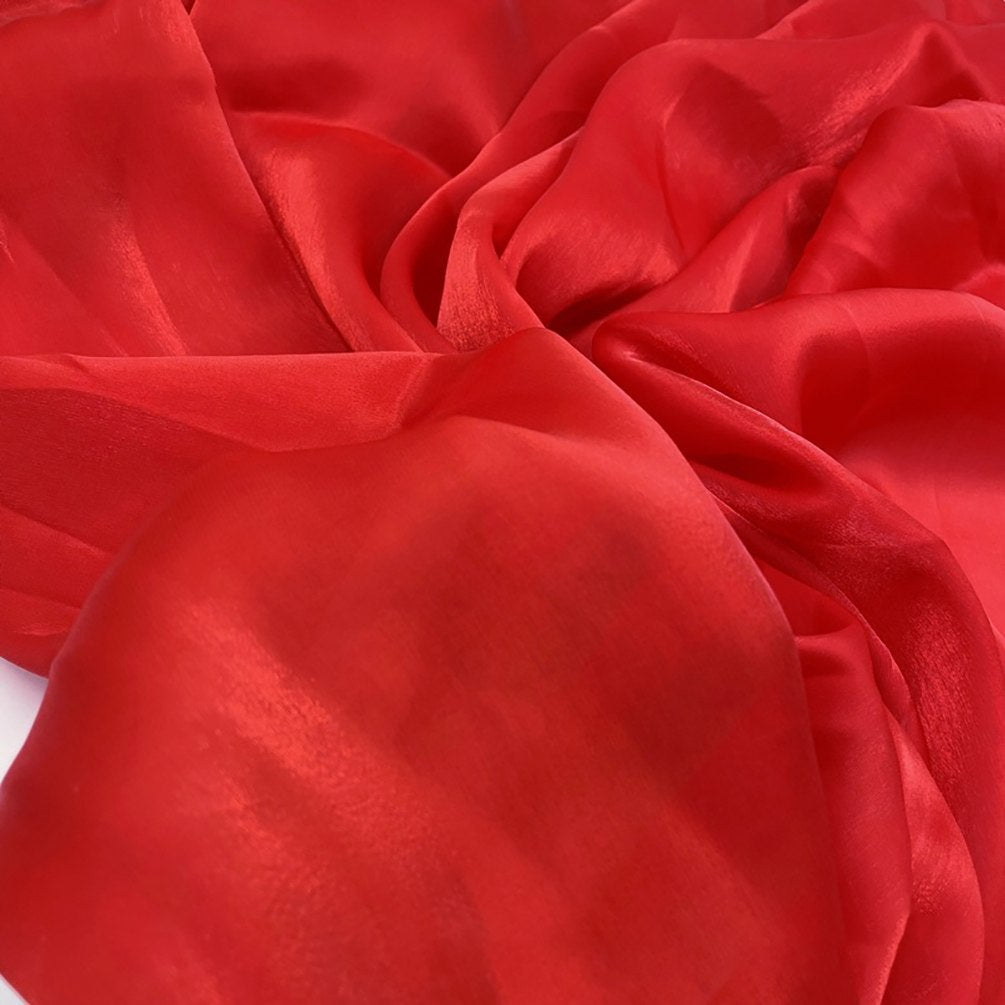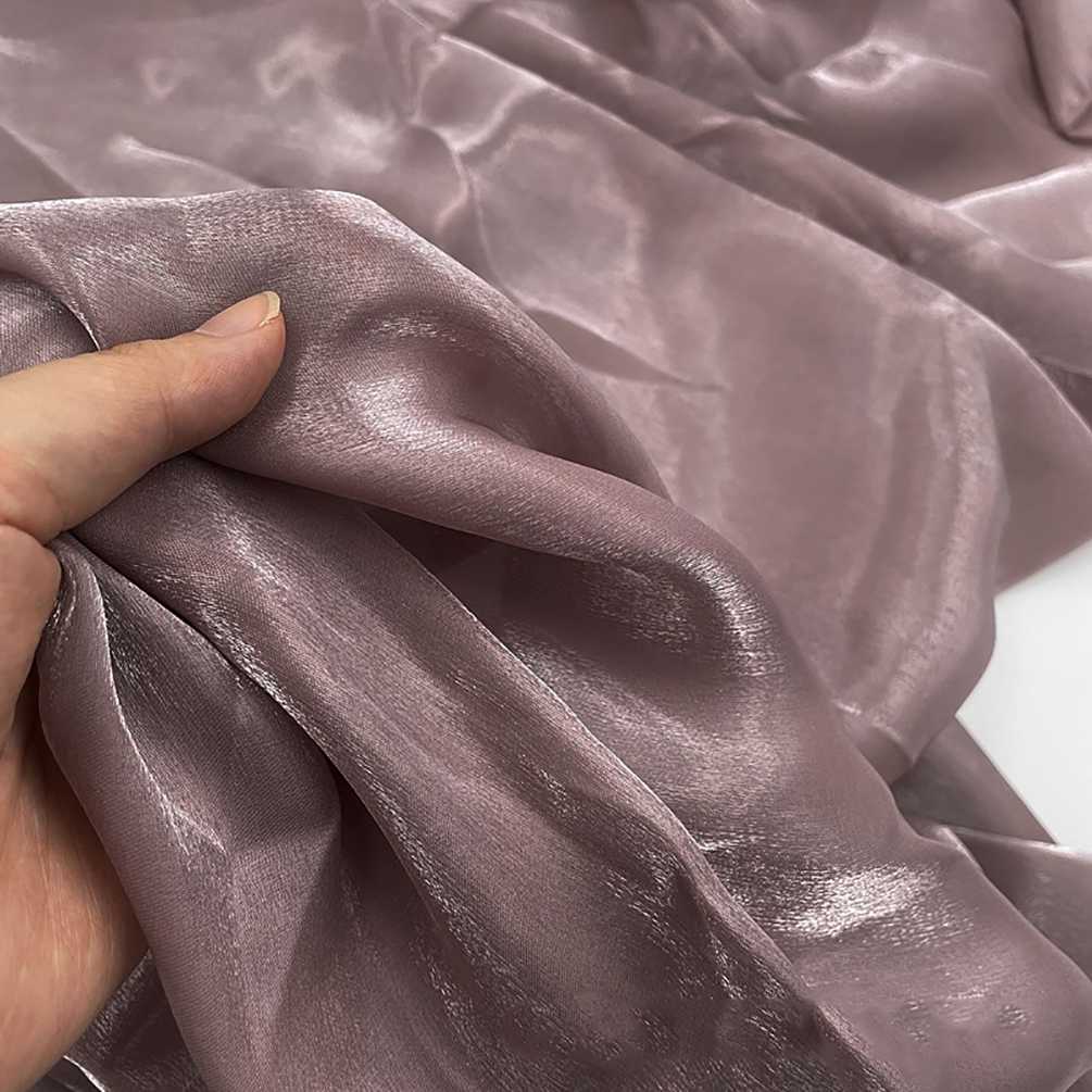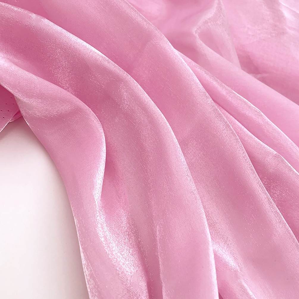 Solid Color organza fabric has a smooth and glossy finish, lending a touch of elegance to any garment or project. Its crisp texture allows it to hold its shape well, making it ideal for creating structured and voluminous designs.