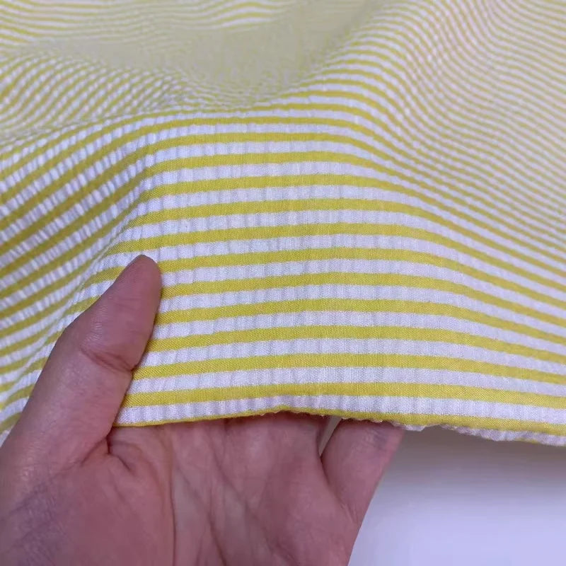 Choose Stripe Seersucker Fabric for effortless style and comfort. Perfect for designers and DIY enthusiasts seeking breathable, wrinkle-resistant material. Shop now to add classic charm and practicality to your wardrobe or home!