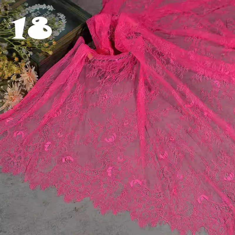 Versatile and easy to work with, this eyelash lace fabric suits designers, DIY enthusiasts, and fashion professionals alike. Ideal for overlays, trims, and embellishments, it enhances the beauty of dresses, veils, and accessories. Available by the yard, our lace fabric combines superior quality with striking visual appeal, ensuring your projects stand out with refined detail and vibrant charm.