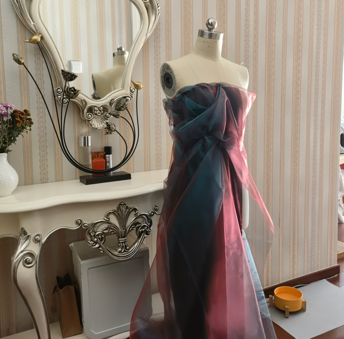 Iridescent Organza Fabric By The Yard | Crystal Organza Dress Material
